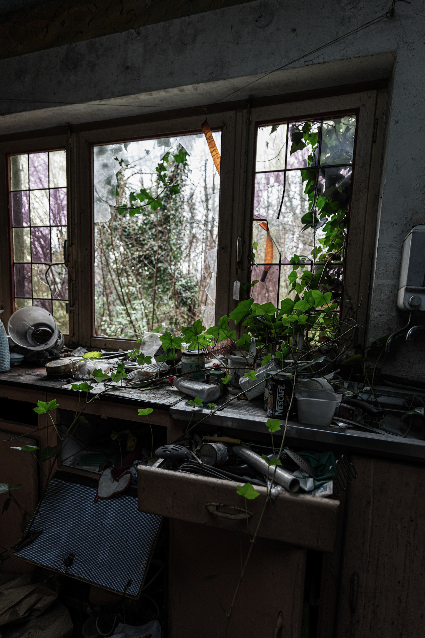 Huis is groen geverft dus de naam is duidelijk. Maar wat de geschiedenis is? Alles is nog in het huis aanwezig, alsof ze gewoon zijn weggelopen uit dit leven. Helaas heeft de lokale jeugd er weer een bende van gemaakt...